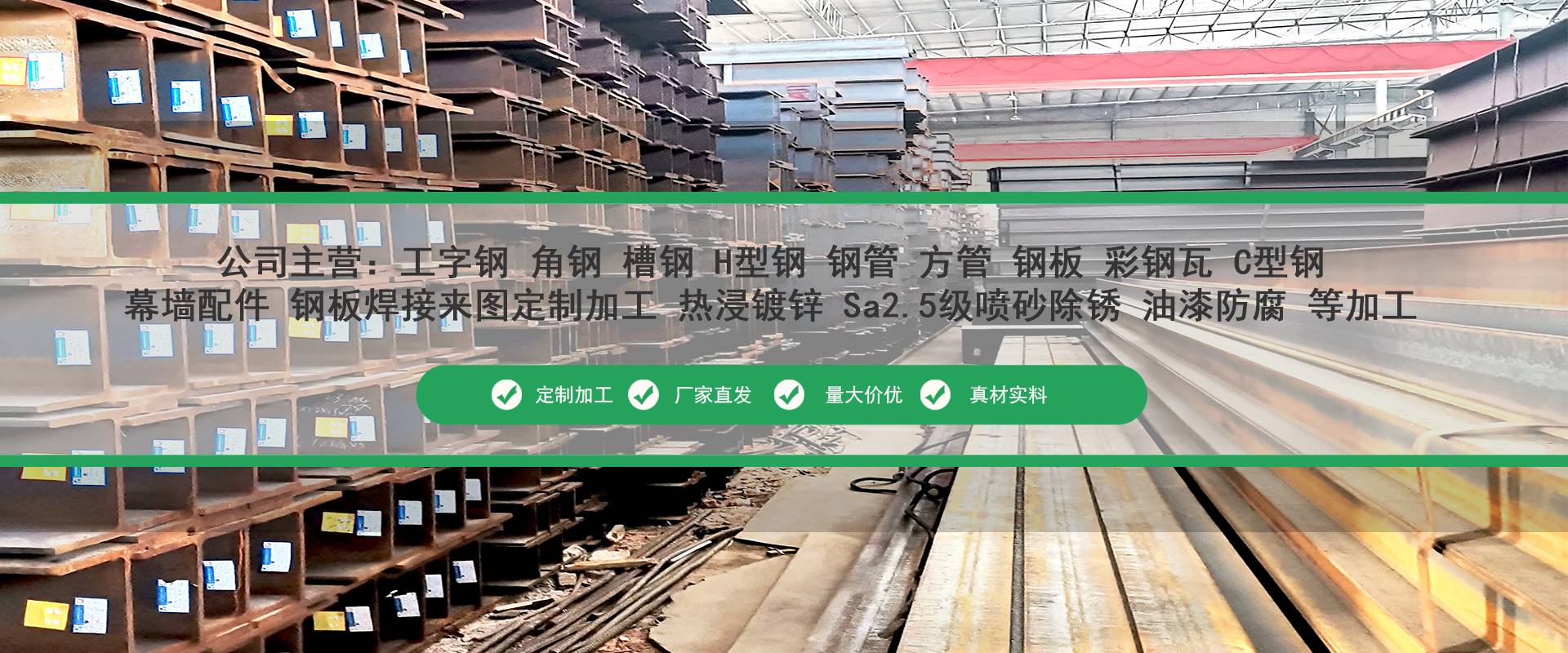廣東佛山京錦鋼鐵是華南地區大型鋼鐵貿易商,廣東華南鋼材現貨批發交易,主營工字鋼、槽鋼、角鋼、H型鋼、鋼管、鋼板等,型號規格齊全,批發價格更優,公司配有鋼管防腐加工廠,熱浸鍍鋅生產線二條,鋼材Sa2.5級噴砂,拋丸除銹,高頻焊接、折彎、沖孔、鋼板切割、等配套加工廠歡迎來電咨詢。